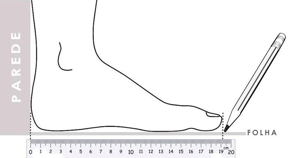 Meça a distância da borda do papel (onde estava o calcanhar) até a marca do dedo.